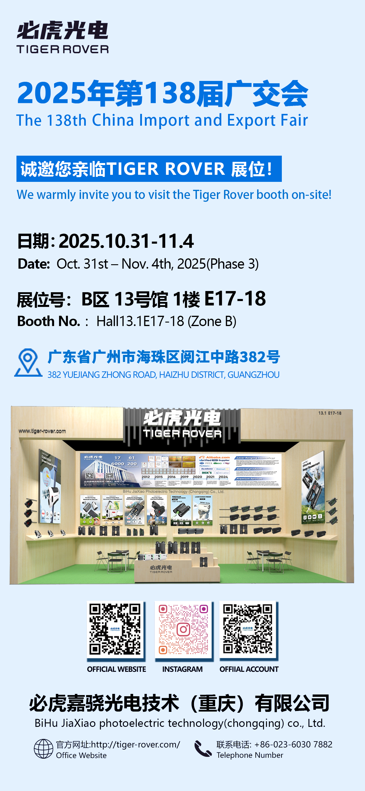 The 138th Canton Fair | TIGER ROVER 必虎光电 Welcome to Our Booth:13.1E17-18.